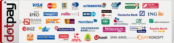 Rozliczenia transakcji kartą kredytową i e-przelewem przeprowadzane są za pośrednictwem Centrum Rozliczeniowego Dotpay.